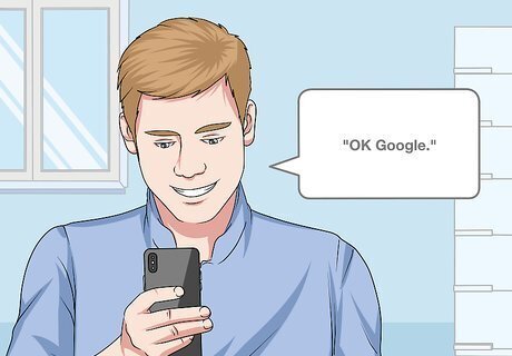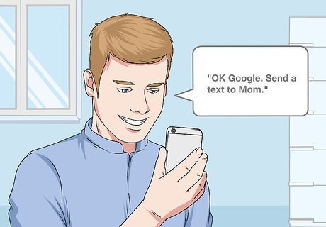 Say a command. Here are some examples of voice commands you can use with OK Google: Calendars and reminders: “Set an alarm for 7 AM tomorrow morning.” “Remind me to call Susie at 4:30 PM next Tuesday.” “Create a calendar event for Work Party on December 24th at 8 PM.” “What's on my schedule tomorrow?” Google Assistant uses Google Calendars associated with your account. Read "How to Use Google Calendar" to learn more about how to set up Google Calendar. Communication: “Send a text to Mom.” “Start a Hangout with Esme and Charles.” “Listen to voicemail.” Travel: “Fastest route to work.” “What time is my flight?” “Where's the nearest bar?” Google Home: "Play music on living room speaker." "Play a YouTube video on the TV." "Turn bedroom lights on." Read "How to Set Up Google Home" to learn how to add smart devices to your Google Home network. Other searches: “What does Sarcasm mean?” “Track my package.” “What's the tip for a $68 bill?” “Who invented the lead pencil?”