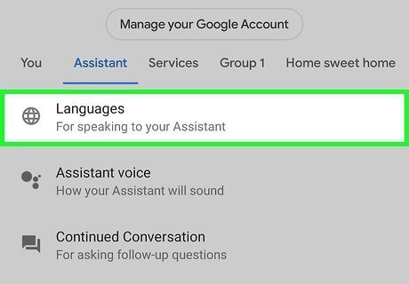 Tap Languages. It's the first option in the "Assistant" menu. This displays a list of languages you can choose.