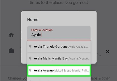 Type your home address. This searches for your address on Google Maps and displays a list of locations.