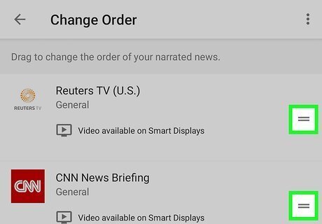 Tap the icon with two lines and drag the news source.. There is an icon with two lines to the right of each news source in the list. Tap this icon and drag it to change the order. Put your favorite news sources at the top.