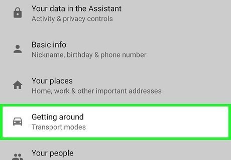 Tap Getting Around. It's the third option under the Personal Info tab. It's next to an icon that resembles a car.