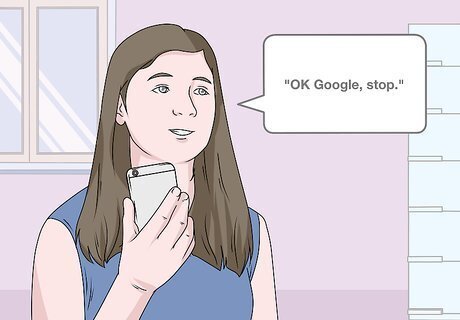 Say "Ok Google Stop". If you want to quit in the middle of an app, say "Ok Google Stop".