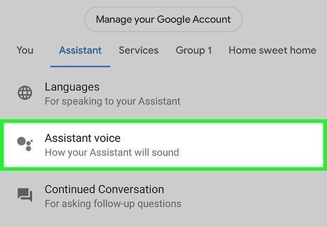 Tap one of the colored circles. Each colored circle represents a different voice you can select for your Google Assistant. When you tap a colored circle, you will hear a sample of how the voice sounds. Tap the circle of the voice you want your Google Assistant to have.