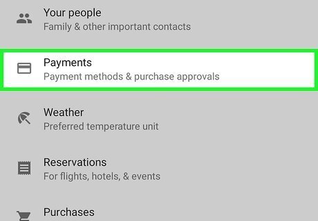 Tap Payment method. It's next to an icon that resembles a credit card. It's the first option in the Payments menu.