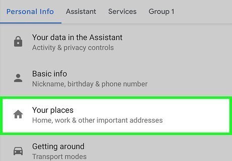 Tap Your places. It's the second option under the Personal info tab. It's next to an icon that resembles a house. This opens the "Home & Work Locations" menu.