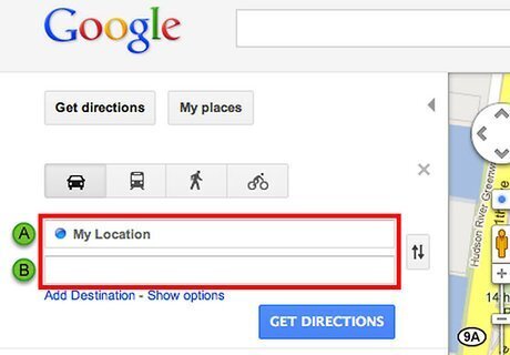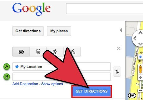 Click on "Get Directions" in the upper-left corner of your Google Maps session to determine the distance between a home for sale and important destinations. For example, you may want to see how far away the home for sale is from your place of work or favorite grocery store.