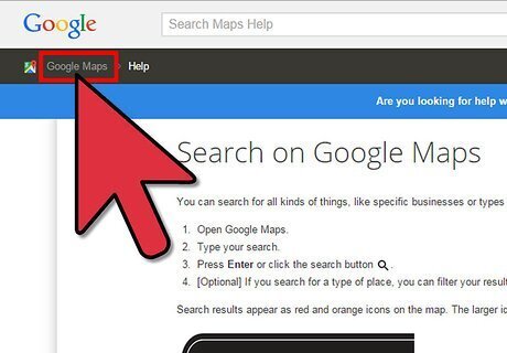 Click on the "Google Support" link provided to you in the Sources section at the bottom of this article. The Google Support link will guide you to the main "Help" page for Google Maps.