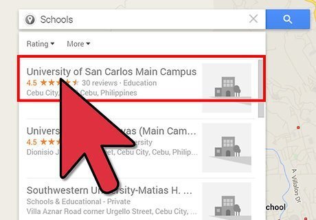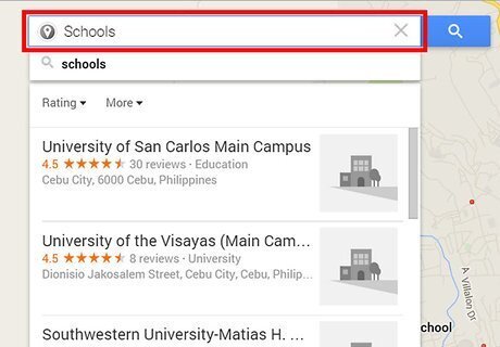 Enter one or more keywords that describe the business or place you are looking for into the search field. For example, if you want to find schools near a home for sale, type "schools" into the search field.
