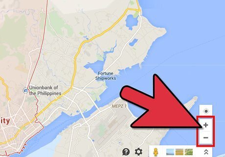 Use the zoom feature located on the left side of the map to zoom out, or zoom in to the address and its surrounding area. For example, if you want to zoom in on the home for sale, click on the "plus" symbol located on the zoom bar.