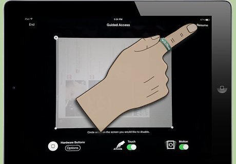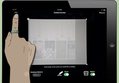 Change the settings or exit Guided Access. Changing the settings may be helpful if you want to adjust the disabled portions of the screen for a new page of a game or app. Then click "Resume" if you want to go back into Guided Access, or click "End" if you want to quit Guided Access altogether.