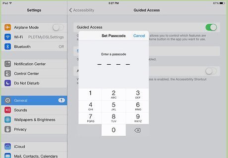 Enter a passcode that you'll want to use to exit Guided Access mode. Make this something you'll remember, but your child or other restricted user won't know. You will then be asked to enter it again for confirmation. After doing so, you can exit the Settings.