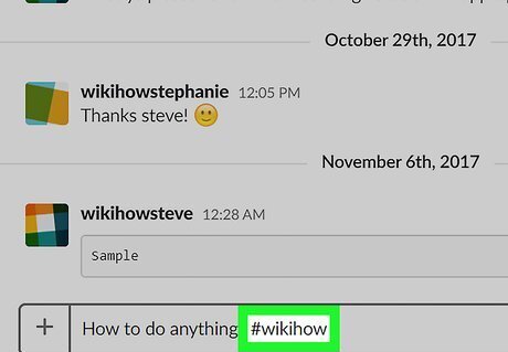 Type # followed by the channel name. For example, to link to a channel called “wikiHow,” type #wikiHow.