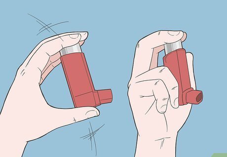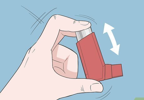 Shake the inhaler 3-4 times before each use, then place it in your mouth. Hold the inhaler with the mouthpiece at the bottom, facing towards you. Shake it gently. Then place the inhaler in or near your mouth, depending on your doctor's recommendation: To use the open-mouthed method, place your inhaler about 2 finger widths away from your mouth. Keep your mouth wide open and spray the inhaler so that the medicine doesn't hit your tongue or the roof of your mouth. To use the close-mouthed method, place the inhaler inside your mouth, using your teeth to hold it in place, and close your lips around it. Make sure you don't block the mouthpiece with your tongue. If you're using a spacer, place it between your mouth and the inhaler. This will help you get even, effortless delivery of your medication.
