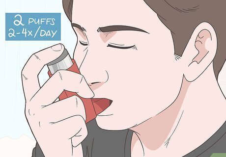 Take 1-2 puffs 2-4 times a day, or 1-4 puffs 2 times a day for children. Ask your child's pediatrician if the open-mouthed or close-mouthed method will be easier. Help your child position the inhaler in their mouth, and then press down on the middle of the canister while your child breathes in. Have your child hold their breath for as long as they can while the medicine settles into the airway. Young children might use a nebulizer to get proper, even doses rather than concentrated dose inhalers. Watch to see if any medicine comes out of your child's closed mouth. If so, your child didn't quite get a full dose. Dosing for children can vary based on age, so talk to your pediatrician about exactly how much your child should use the inhaler for asthma.