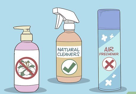 Decrease your environment's toxic load. Chronic lung issues may be caused or aggravated by toxins in your environment. This includes mold, perfume, household chemicals, and outdoor air pollution. Remove as many of these toxins as you can, and limit your exposure to toxins you can't avoid. For example, use fragrance-free products in your home, choose natural cleaners over harsh chemicals, and avoid using air fresheners. Additionally, minimize your time spent outdoors in areas with air pollution and use a HEPA filter to improve the air quality inside your home or work space.