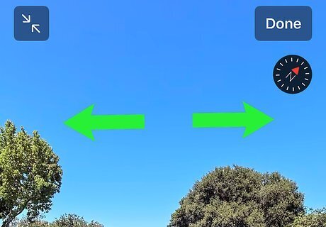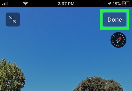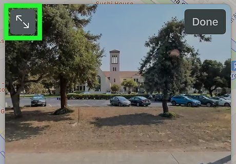 Tap Done when you're finished. It's at the top-right corner. This returns you to the overhead map view. To view another spot on the current map with Look Around, tap and hold that location to drop a pin, then tap the binoculars icon to display the pannable image.