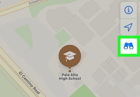 Search for a location. To do so, type an address or landmark into the search bar and tap the desired search result. Look Around is not available in all locations, but as of October 2019, you can use it to browse locations in much of California, Hawaii, Arizona, and Nevada. If you just want to browse a supported area without entering an address, drag the map to the desired location, then zoom in until you see an icon of binoculars appear near the top-right corner of the map.