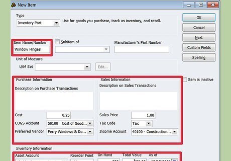 Type in the item quantity that is in stock (QuickBooks will automatically update the item after each sale and remind you when you are running low on an item).