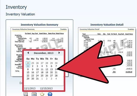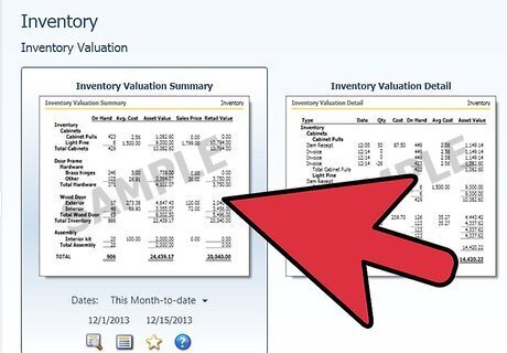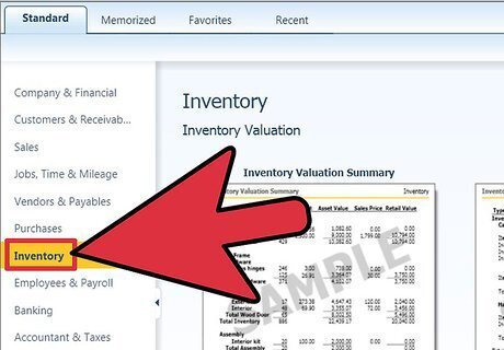 Find the "Standard" tab and choose "Inventory" to see a list of the types of reports that can be generated.