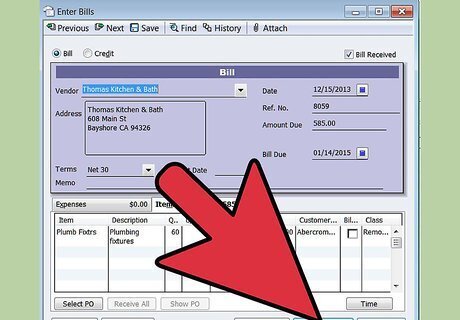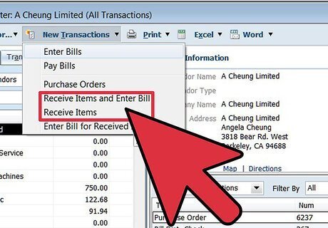 Select "Receive Items" to list items in inventory for which you have already paid or select "Receive Items and Enter Bill" for those not already paid.