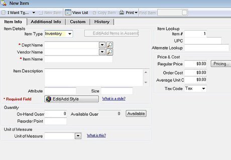 Enter the information on the item's price and cost to you (these will track automatically for you and apply the price to your sales information and the cost to your profit and loss report).