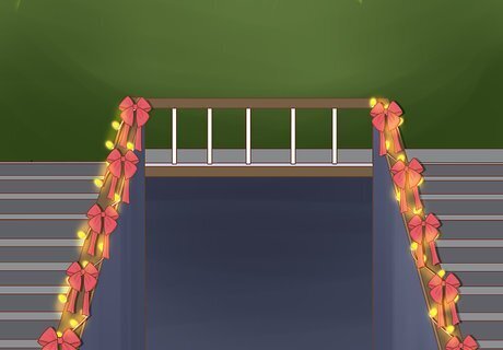 Tie colored ribbons to string lights to coordinate colors. Many kinds of string lights are white in color, but even colored light can be integrated better with your existing color scheme. Simply tie ribbon that matches the color scheme of your room in between lights. For an extra dash of style, why not tie a decorative bow? You could also add suitably colored streamers or tinsel to the spaces between lights.