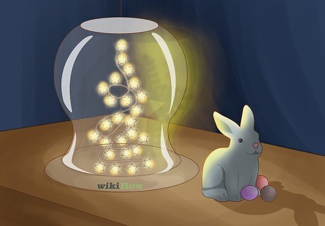 Mix string lights with trinkets in a glass vase. This is a great way of making a festive lamp for a special occasion. Frequently, this design uses Christmas ornaments mixed with string lights in a vase, but you can add whatever you please. Some examples of festive lamps you might consider making include: Easter eggs and miniature rabbits mixed with lights. Shamrocks, gold coins, and other St. Patrick's Day trinkets with lights. Fabric in the color of your home team, a home team pennant, other small home team paraphernalia, and lights. Be careful not to place the string lights next to anything that could melt or catch fire, such as tissue paper or chocolate candies.