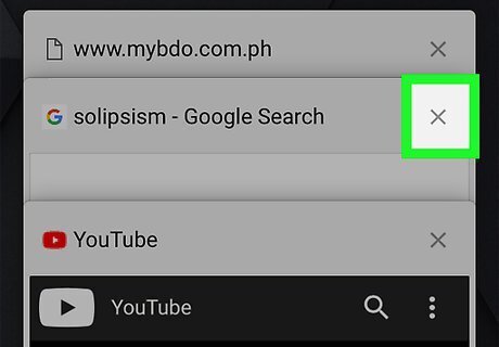 Close a tab. Tap the "Tabs" button, then tap the X in the top-right corner of the tab you want to close. Again, on some Androids, you can close a tab by tapping X in the upper-right corner of the tab at the top of the screen.
