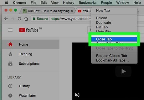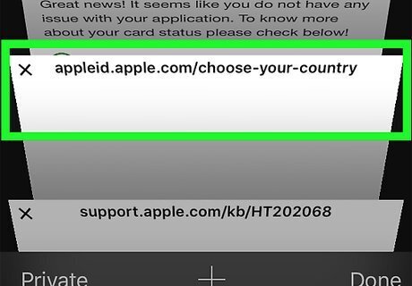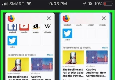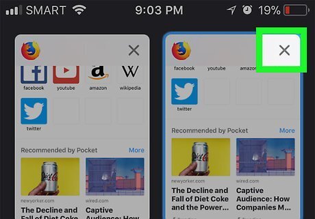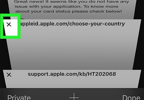 Close a tab. Tap the two boxes in the bottom-right corner of the screen, then tap the x in the top-right corner of a tab's card to close it. You can also swipe a card to the left to close it.