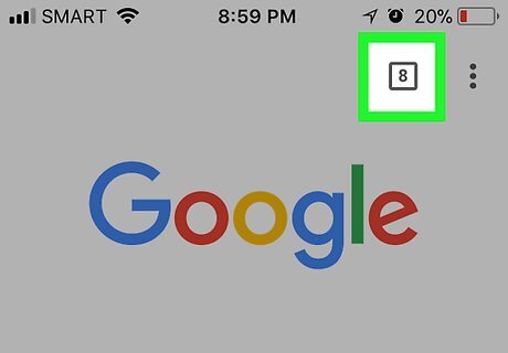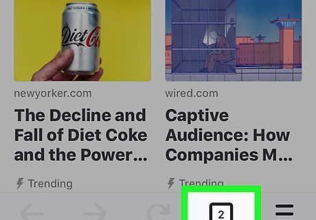 View your open tabs. Tap the two boxes in the bottom-right corner of the screen. This will bring up a list of all currently open tabs.