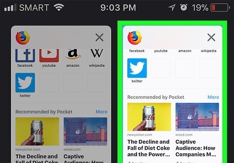 Switch to a different tab. Scroll up or down to the tab you want to open, then tap the tab to switch to it. You can do this from any tab by tapping the "Tabs" button and then selecting the tab you want to open.