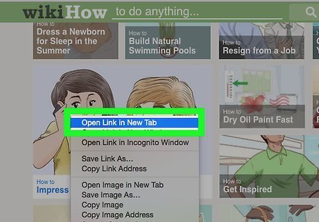 Open a link in a new tab. If you want to open a link on a web page without exiting the current page, you can right-click the link and then click your browser's Open in new tab option in the drop-down menu. If you're on a Mac, you may have to hold down Control while clicking the link to get the drop-down menu to appear. You can also hold down Ctrl (Windows) or ⌘ Command (Mac) while clicking the link to open it in a new tab.