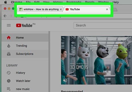 Switch between tabs. At any time, you can click a different tab than the one you're using to switch to it. This will not close your tab, nor will it move the tab to a different location in your browser's window. For example, if you're on Facebook and you have a tab with YouTube open, clicking the "YouTube" tab would switch over to the YouTube page without closing the Facebook page.