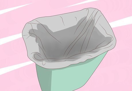 Line your pail with a nylon or PUL tote. If you do not line your pail, you will need to clean it out separately every time you wash a load of diapers. A cloth pail liner can be removed and washed alongside the diapers, saving you time and energy. Do not use bags made of cotton or other woven fabrics, however, since these will absorb the odor and moisture from the soiled diapers. Instead, use a bag made of nylon, PUL, or another water-resistant or laminated fabric. Alternatively, use a disposable plastic bag to line the pail. Plastic bags will contain the moisture and odor created by your baby's diapers, and they do not need to be washed afterward. You will need to change the bag each time you wash a load of cloth diapers, though, which can get costly and wasteful.