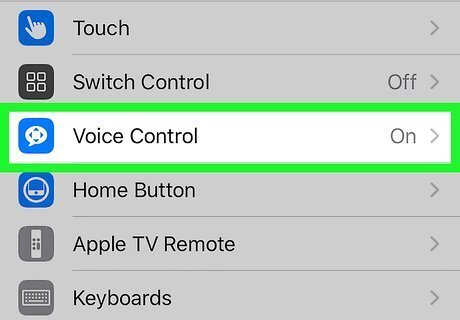 Scroll down and tap Voice Control. It's in the second group of settings.