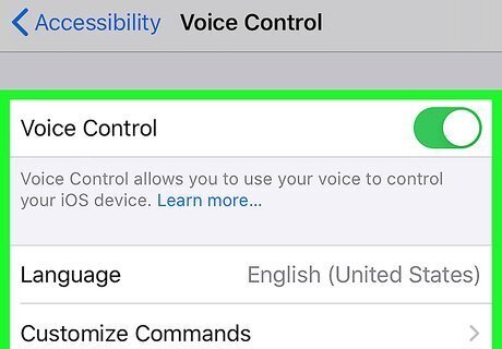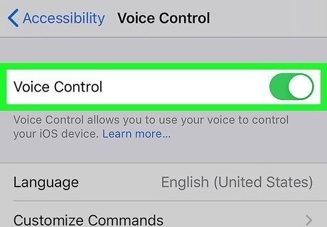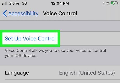 Tap Set Up Voice Control. It's the blue link at the top of the screen. If you've already set up Voice Control, you'll see a switch at the top of the menu instead. This switch will be On (green) if Voice Control is enabled, and Off (gray) if disabled. You can quickly toggle this switch on and off at any time to enable or disable Voice Control.