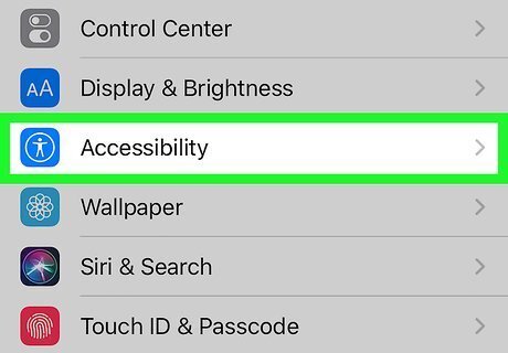 Scroll down and tap Accessibility. It's the blue icon with a circle and outline of a person inside.