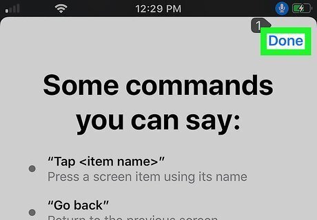 Say "Tap Done." Because you said "Tap Done," Voice Control will tap the Done button to close the window. When you're moving around your iPhone or iPad, you can say "Tap (button name)" to tap buttons as you would with a finger.