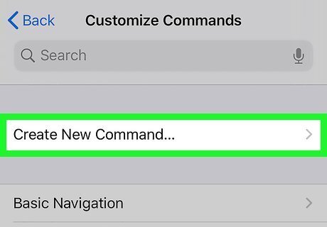 Tap Create New Command to make a custom voice command. It's at the top of the "Customize Commands" menu.