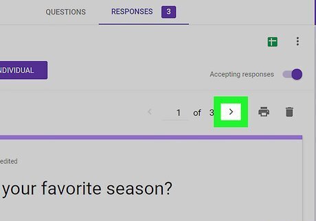 Click the Android 7 Expand Right icon on the top-right. You can find it next to the Android 7 Print icon in the upper-right corner of your form. This will allow you to browse all the responses submitted by every individual responder. This way, you can view a single set of all the responses submitted by an individual responder to all of your questions.