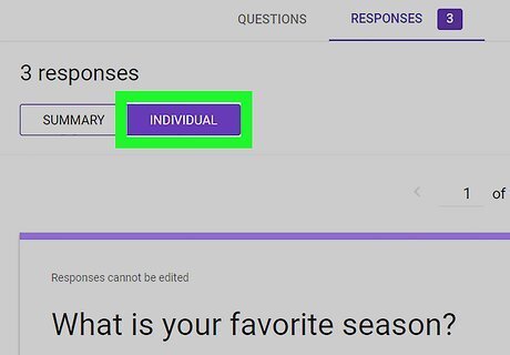 Click the INDIVIDUAL tab on the top-left. You can find this button next to SUMMARY in the upper-left corner of the page. This will open a list of all the individual responses submitted to your questionnaire.