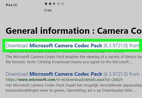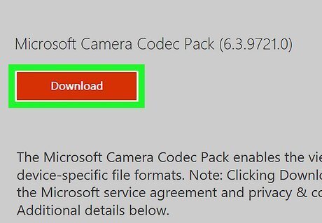 Click Microsoft Camera Codec Pack in the search results. This option should be the top result under the Downloads or General information heading.