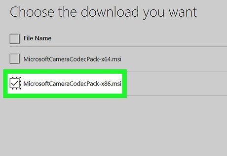 Select the codec pack for your computer's operating system. Click and check the box next to the codec pack version you want to download. If your computer is running the 64-bit version of Windows, you'll download the "x64" codec pack. If you're running the 32-bit version, select "x86."