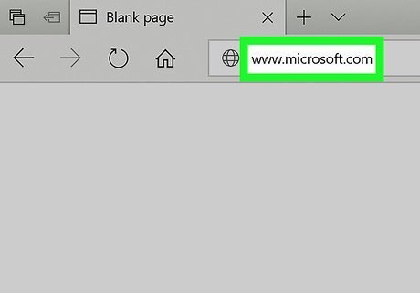 Open the Microsoft website in an internet browser. Type www.microsoft.com into the address bar, and hit ↵ Enter or ⏎ Return on your keyboard.