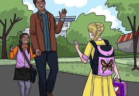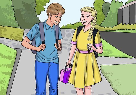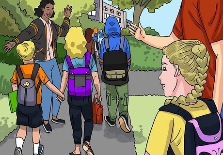 Walk to school with a neighborhood friend and their parents. If your parents are busy in the morning, it might be best to walk to school with one of your neighborhood friends and their parents. Make sure you have permission from your parents to walk to school with them.
