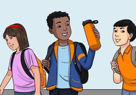 Take a water bottle with you. You never know when you are going to get thirsty, so remember to bring your water bottle. Choose a water bottle that does not leak. Choose a water bottle that is free of BPA and other chemicals. Choose an insulated water bottle to keep your water at a nice temperature.