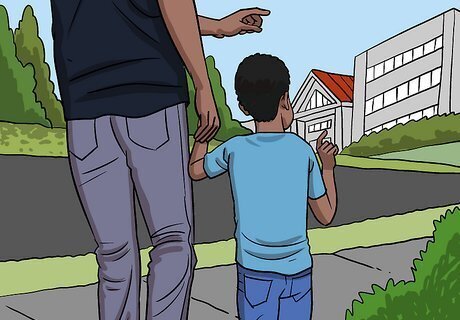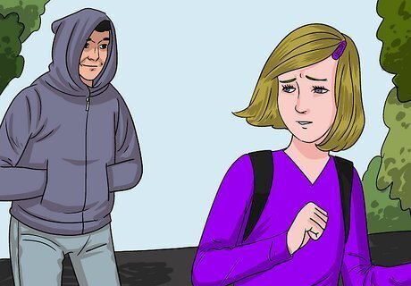 Avoid interacting with suspicious strangers. A stranger is someone you don't know. Strangers are neither good nor bad, but they are people you do not know. You should be careful around strangers who look suspicious or dangerous and try to avoid them by walking on the other side of the street. If a stranger approaches you and makes you feel uncomfortable, you should say “no,” and then run away from them. You should also yell loudly as you are running away. Then, find an adult and tell them what happened right away. This is called “No, Go, Yell, Tell.” If you are far from home or are in danger, don't hesitate to phone emergency services right away.