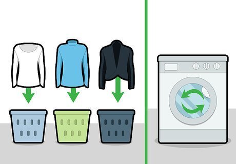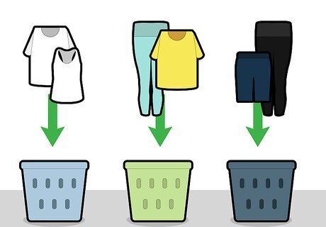 Separate your garments into color groups. The luon, swift, silverescent fabrics, and natural blend families should be separated into bright colors, dark colors, and whites. Darker colors tend to bleed the dye when washed, so you’ll definitely want to wash your darker colors together. You may want to pre-soak the clothes that have stains on them.