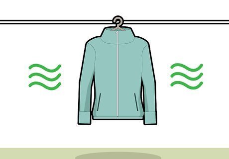 Hang the clothing to dry. As soon as your outerwear is done washing, hang them to dry. Pinning them to a clothing line or draping them over a drying rack also works. Items with more dirt on them should be washed separately from other clothing. They will require a longer, stronger wash cycle.