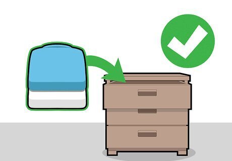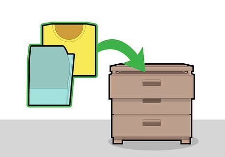 Fold and store your clothing. Decide on which items you want to hang and which ones you want to fold and put the latter in a dresser. You'll want to fold the clothes right when they’re done drying to prevent wrinkles, which saves you from ironing them later.